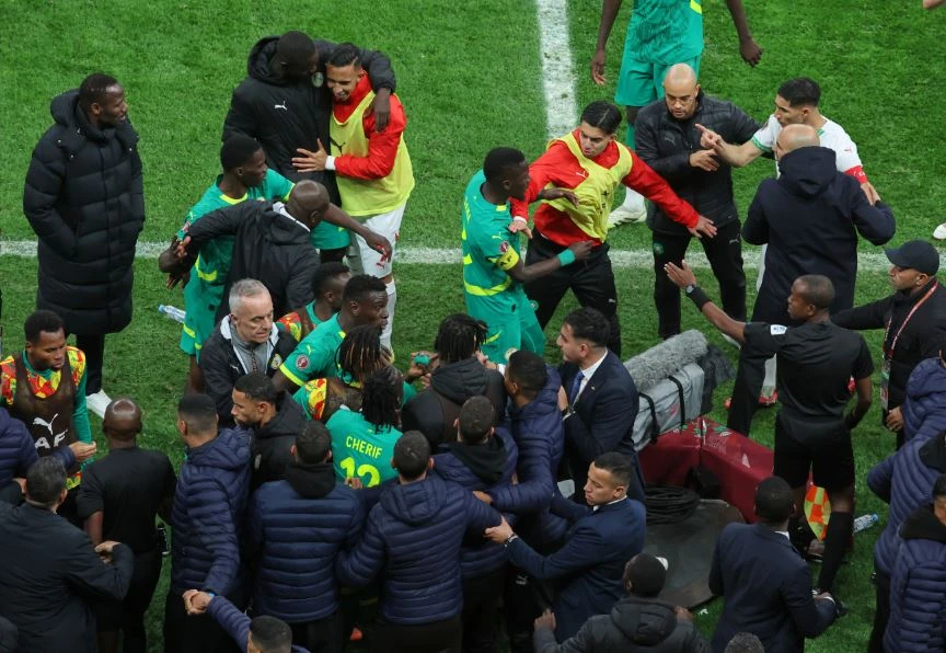 경기 당시 후반 추가시간, 비디오 판독(VAR) 이후 모로코에 페널티킥이 선언되자 세네갈 선수단은 강하게 반발했고, 감독의 지시에 따라 집단적으로 그라운드를 떠나는 사태가 벌어졌다. 경기는 약 17분간 중단됐으며, 이후 주장 사디오 마네의 설득으로 선수들이 복귀하면서 경기가 재개됐다.