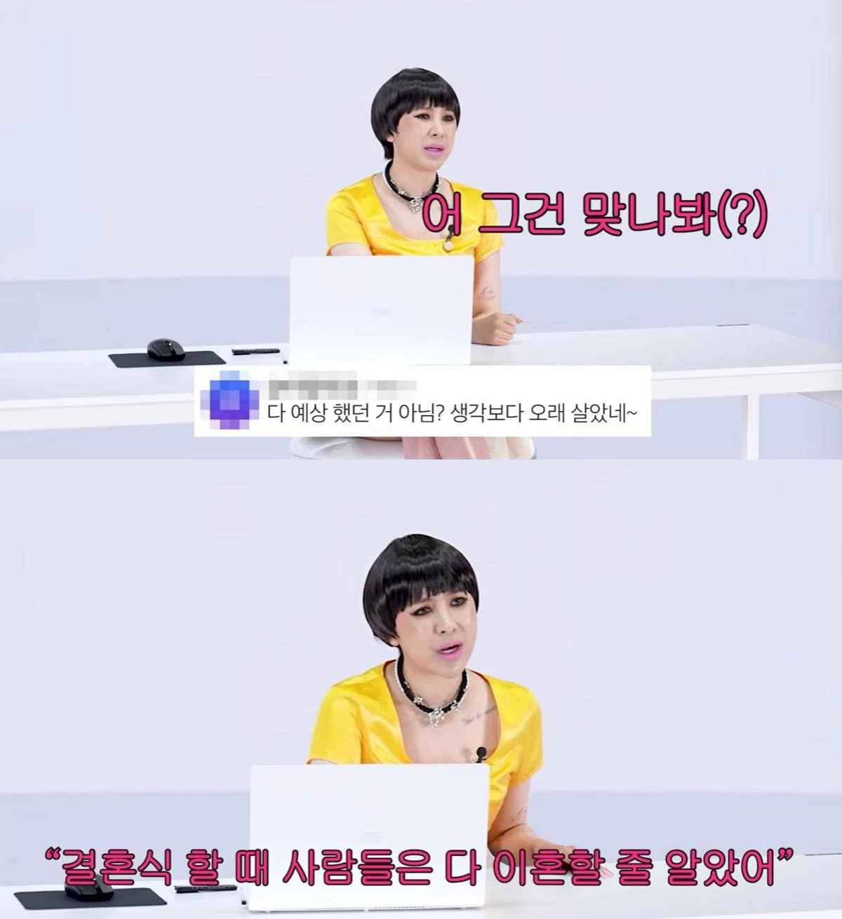 특히 그는 이혼 관련 악플도 살펴 눈길을 끌었다. 서인영은 '(이혼을) 다 예상했던 것 아니냐. 생각보다 오래 살았다'라는 악플에 "그건 맞나 보다"라고 쿨하게 인정하는 모습을 보여 웃음을 자아냈다.