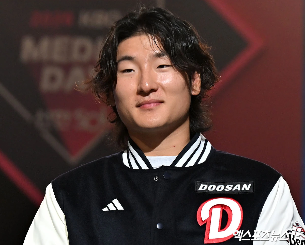(엑스포츠뉴스 잠실, 김한준 기자) 26일 오후 서울 송파구 롯데호텔 월드에서 열린 ‘2026 신한은행 SOL KBO’ 미디어데이, 두산 곽빈이 포즈를 취하고 있다.