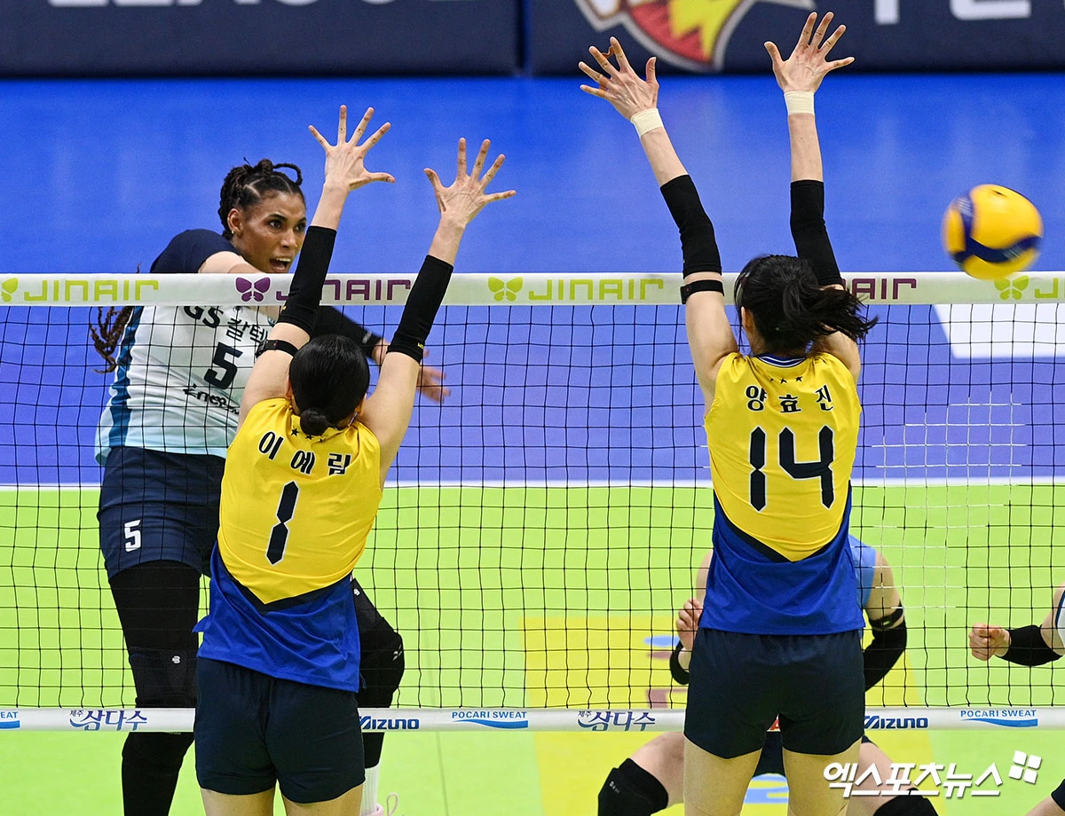 (엑스포츠뉴스 수원, 고아라 기자) 26일 오후 경기도 수원실내체육관에서 열린 '진에어 2025-2026 V-리그' 포스트시즌 여자부 플레이오프 현대건설과 GS칼텍스의 경기, GS칼텍스 실바가 공격을 시도하고 있다.