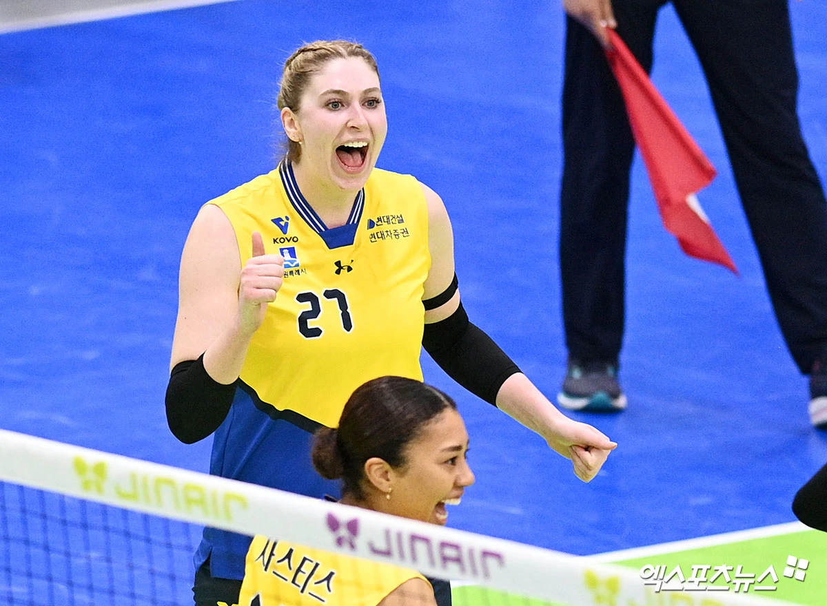 현대건설도 카리 가이스버거(등록명 카리)와 자스티스 야우치(등록명 자스티스)가 각각 19득점, 16득점을 올리며 분전했지만 팀의 패배를 막지 못했다.