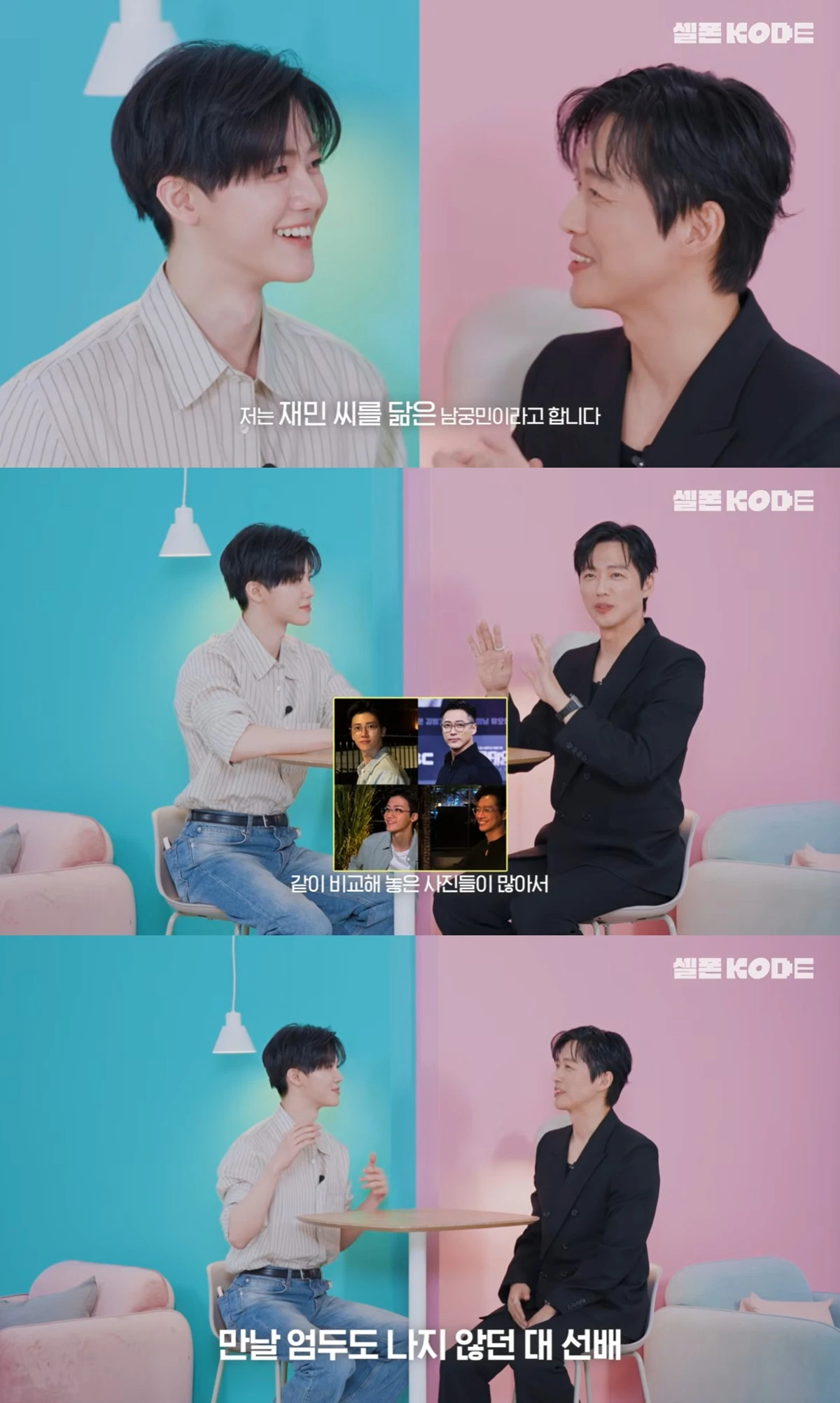 마주 앉은 두 사람은 서로의 얼굴을 보며 "드디어 뵙게 됐다. 재민 씨를 닮은 남궁민이다", "배우님을 닮은 재민이다"라고 소개를 나눴다.