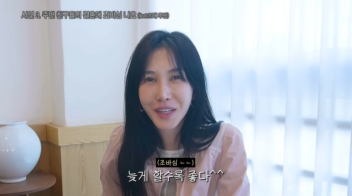 사연자는 주변 친구들의 결혼에 조바심이 난다고. 윤혜진은 "어쩌려고 그래?"라며 이른 나이에 결혼한 사연자의 친구들에게 걱정을 드러내며 "내가 진짜 100% 얘기하는데, 결혼은 늦게 할수록 좋다"고 강력히 충고했다.