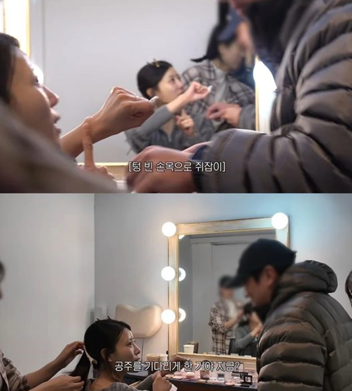 이후 메이크업을 받던 중 지각한 제작진을 만난 이미주는 “늦었냐. 지금 몇 시야”라며 시계도 없는 손목을 가리키는 제스처로 제작진을 몰아붙였다. 이어 “공주를 기다리게 한 거야 지금?”이라고 말하며 상황극을 이어갔다.