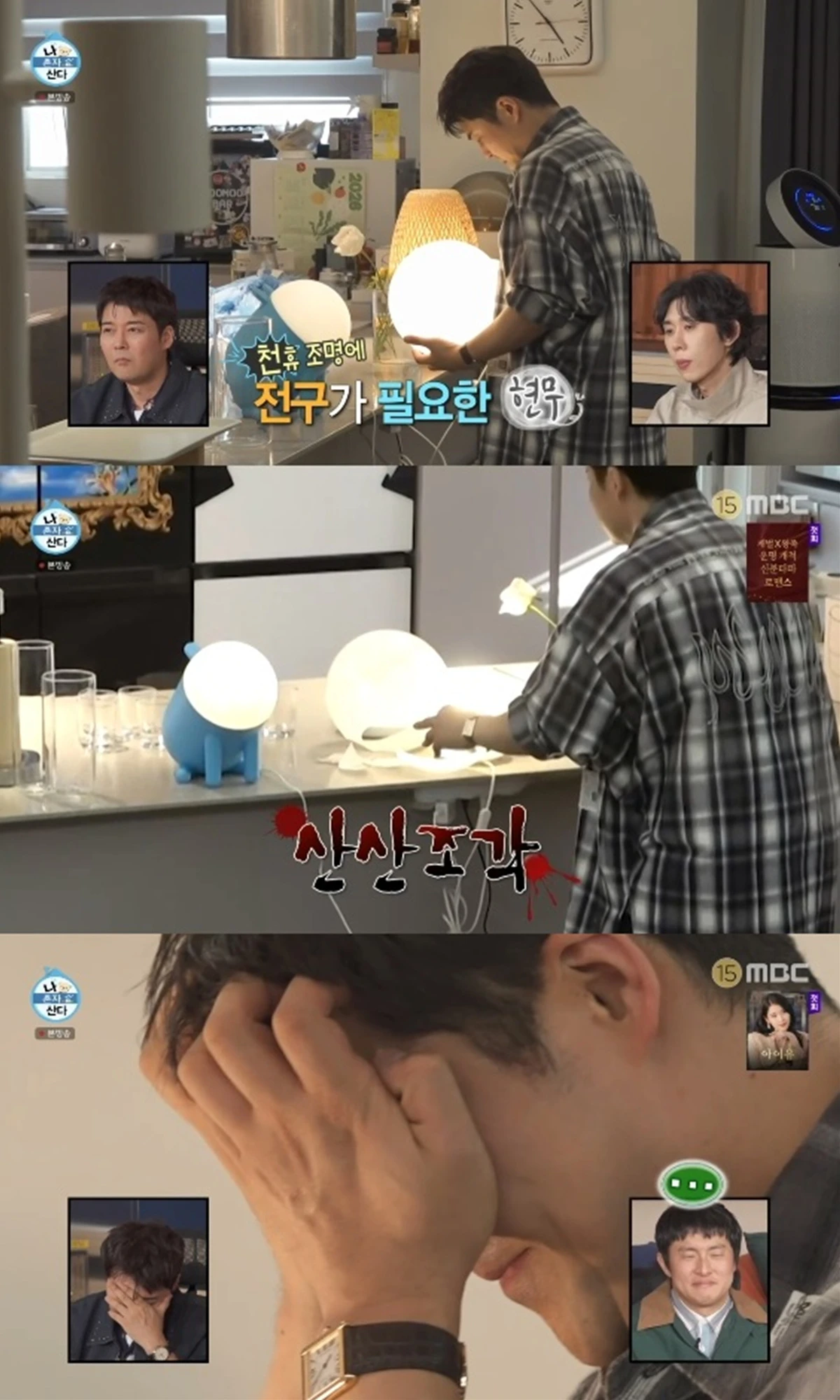 전현무는 구 모양에 있는 전구를 꺼내서 박천휴 조명에 맞는지 끼워보려고 했다.