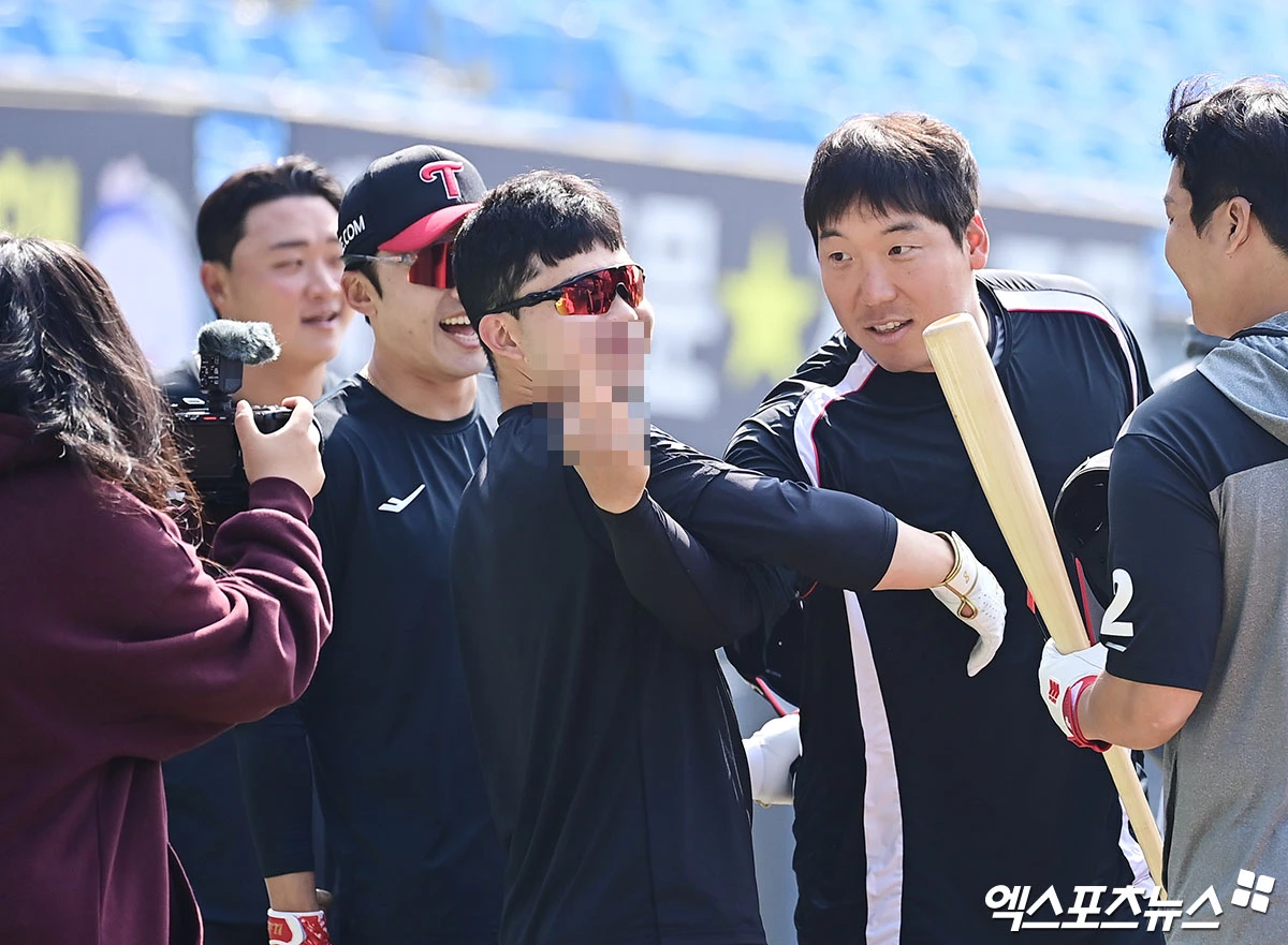 (엑스포츠뉴스 잠실, 박지영 기자) 28일 오후 서울 송파구 잠실야구장에서 열리는 '2026 신한 SOL Bank KBO리그' KT 위즈와 LG 트윈스의 경기에 앞서 KT 김현수가 LG 선수들과 만나 인사를 나누고 있다.