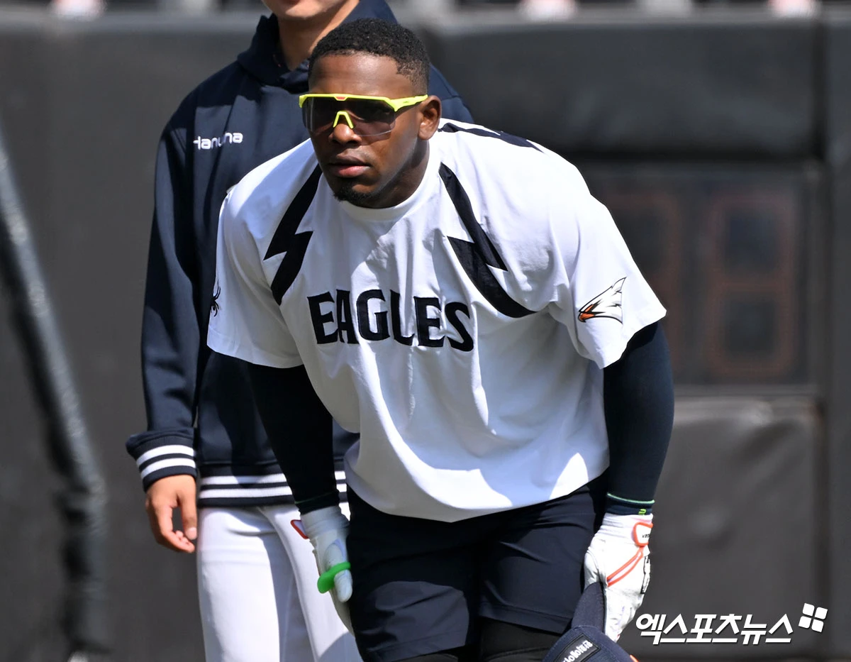 (엑스포츠뉴스 대전, 김한준 기자) 28일 오후 대전 한화생명 볼파크에서 열리는 '2026 신한 SOL Bank KBO리그' 키움 히어로즈와 한화 이글스의 경기, 한화 페라자가 인사를 하고 있다.