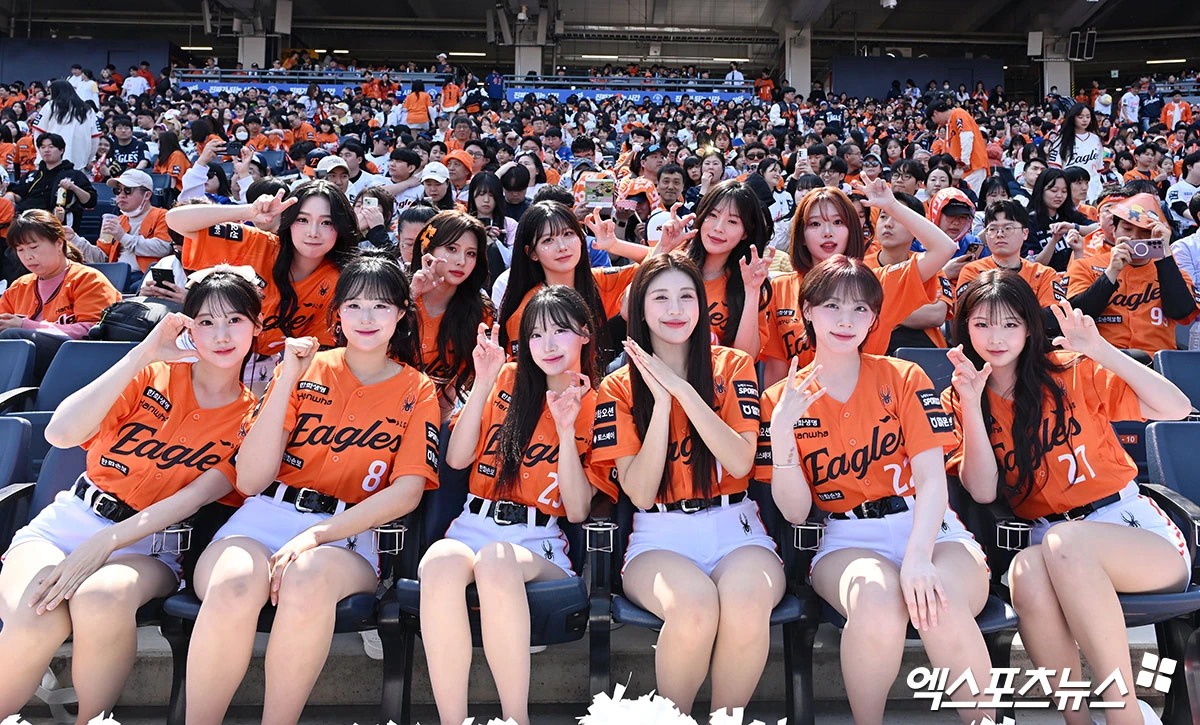 (엑스포츠뉴스 대전, 김한준 기자) 28일 오후 대전 한화생명 볼파크에서 열린 '2026 신한 SOL Bank KBO리그' 키움 히어로즈와 한화 이글스의 개막전 경기, 경기 전 한화 치어리더들이 포즈를 취하고 있다.