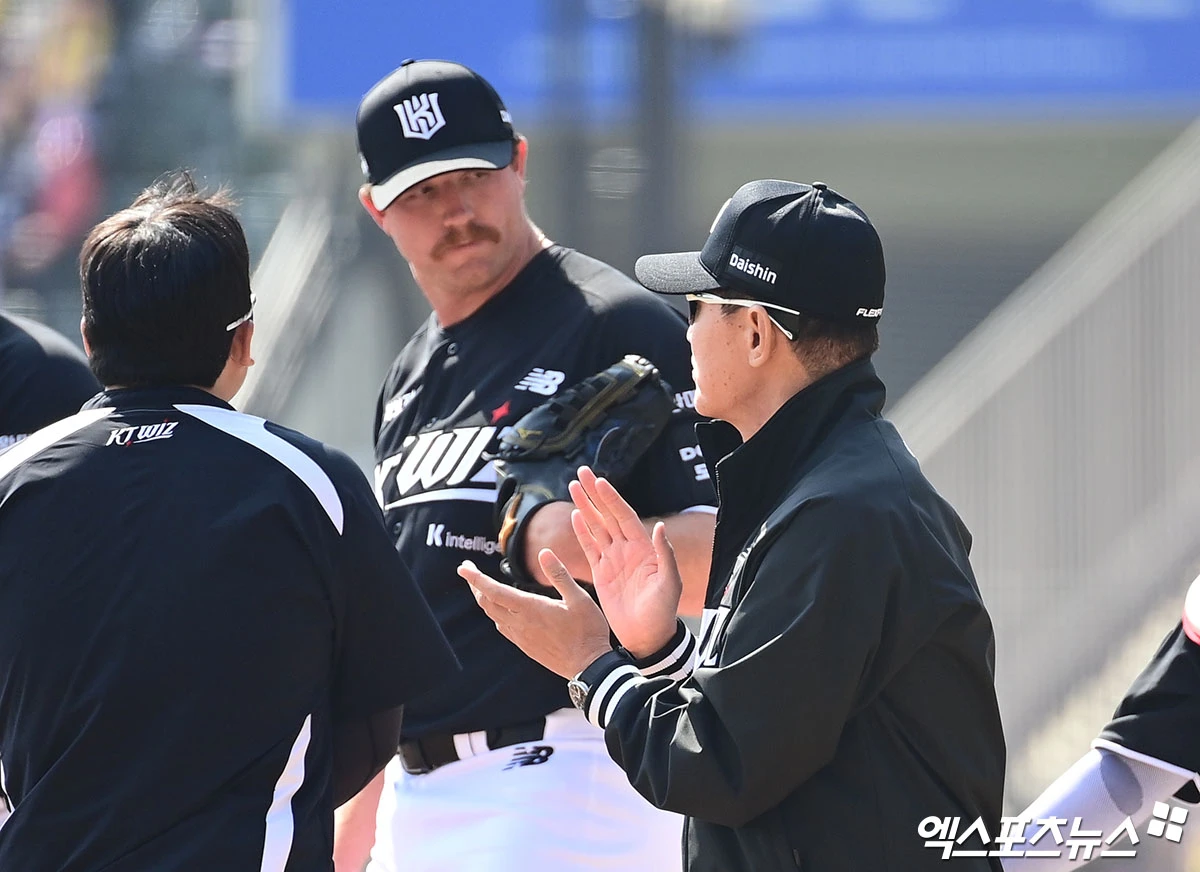 마운드 방문한 이강철 감독 '사우어 할 수 있어'[포토]