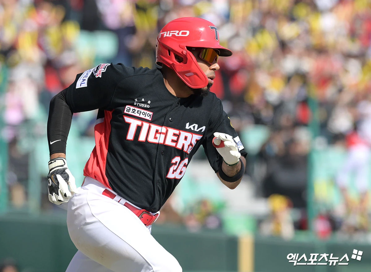 (엑스포츠뉴스 인천, 고아라 기자) 28일 오후 인천SSG랜더스필드에서 열린 '2026 신한 SOL Bank KBO리그' KIA 타이거즈와 SSG 랜더스의 경기, 5회초 KIA 카스트로가 안타를 날리고 있다.