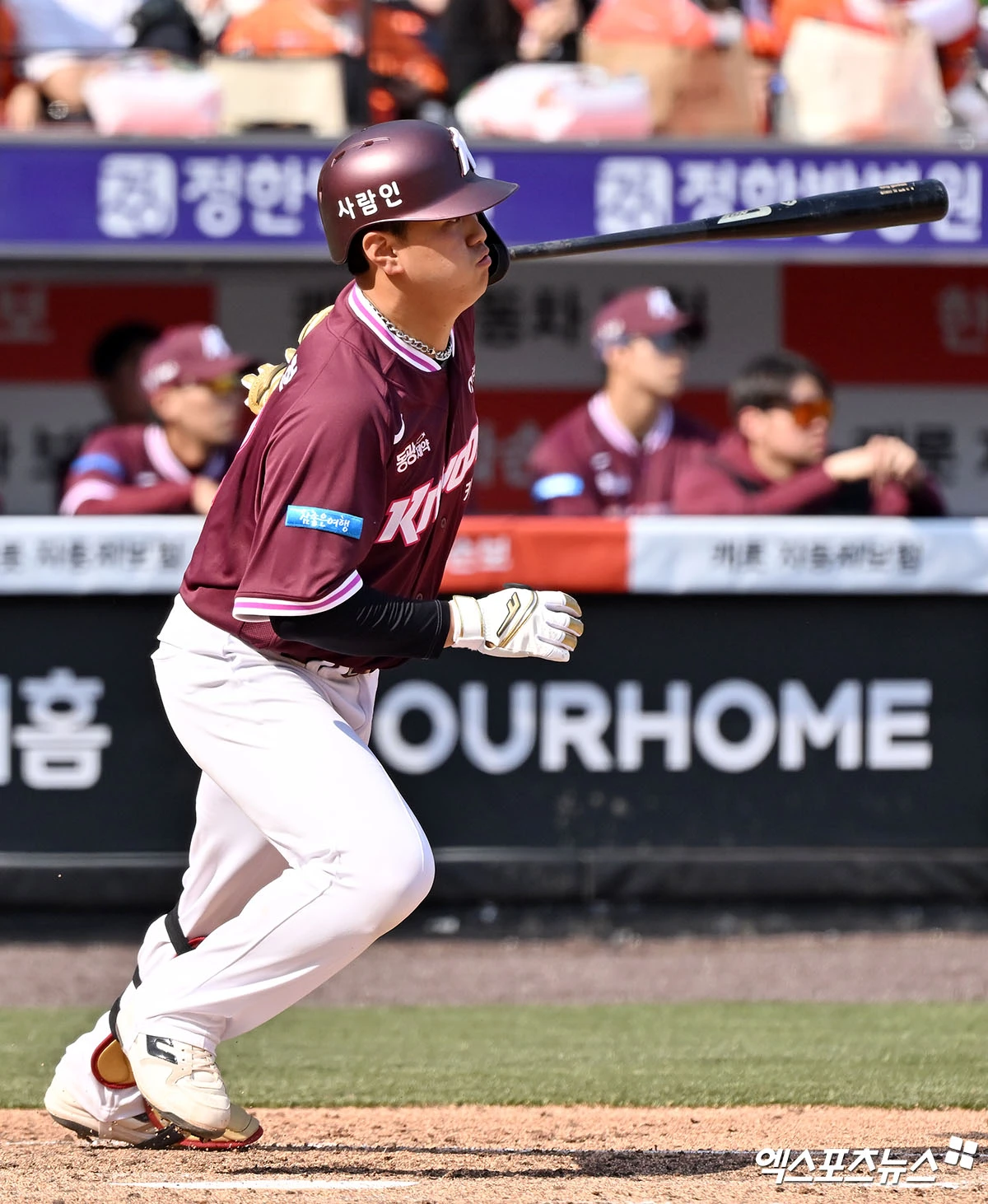 (엑스포츠뉴스 대전, 김한준 기자) 28일 오후 대전 한화생명 볼파크에서 열린 '2026 신한 SOL Bank KBO리그' 키움 히어로즈와 한화 이글스의 개막전 경기, 5회초 키움 김건희가 중전안타를 날리고 있다.