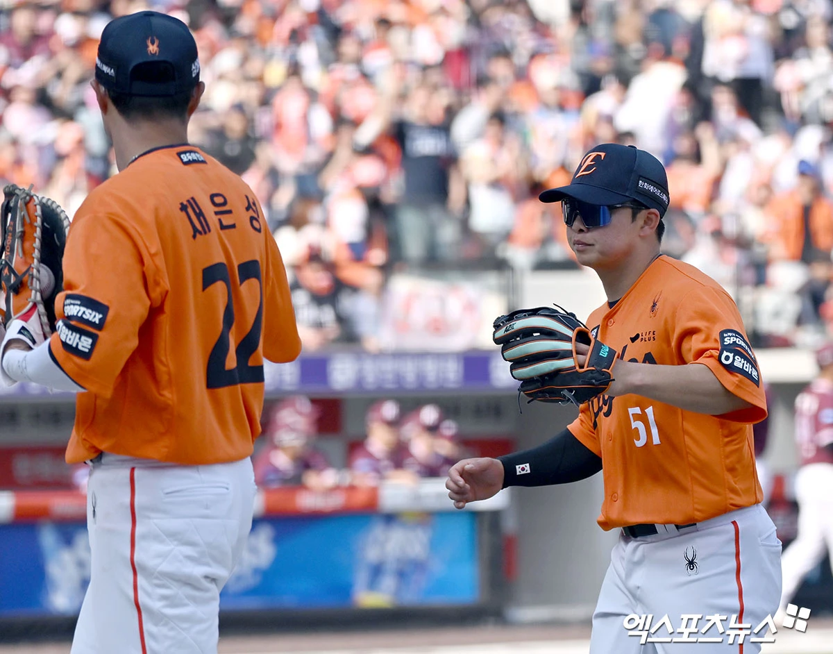 (엑스포츠뉴스 대전, 김한준 기자) 28일 오후 대전 한화생명 볼파크에서 열린 '2026 신한 SOL Bank KBO리그' 키움 히어로즈와 한화 이글스의 개막전 경기, 5회초 수비를 마친 한화 문현빈이 더그아웃으로 향하고 있다.