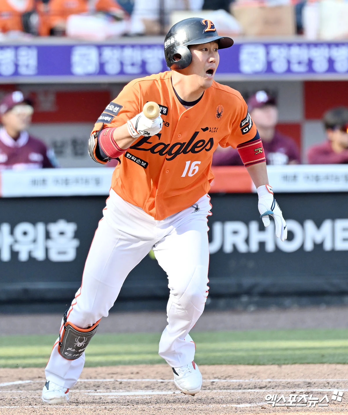 ㅊ(엑스포츠뉴스 대전, 김한준 기자) 28일 오후 대전 한화생명 볼파크에서 열린 '2026 신한 SOL Bank KBO리그' 키움 히어로즈와 한화 이글스의 개막전 경기, 6회말 1사 1루 한화 하주석이 타격을 하고 있다.