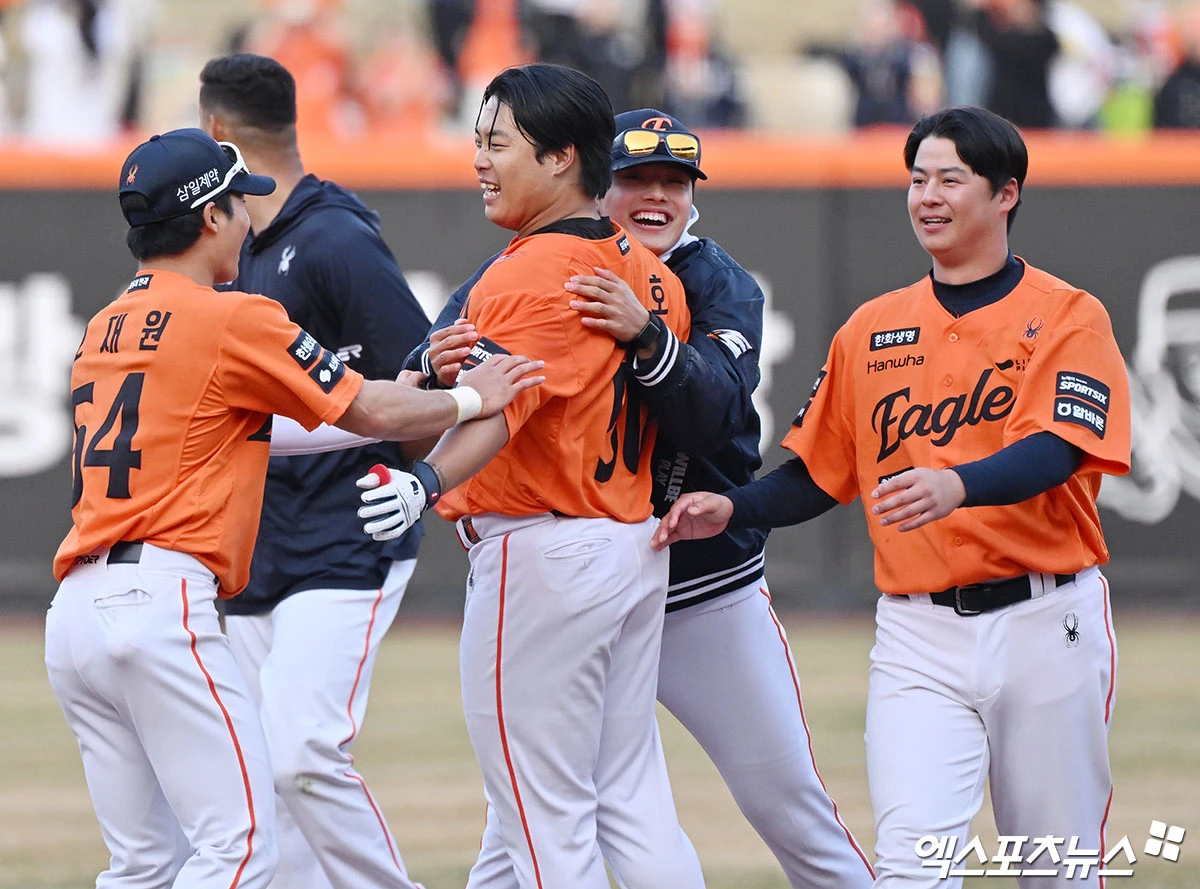 (엑스포츠뉴스 대전, 김한준 기자) 28일 오후 대전 한화생명 볼파크에서 열린 '2026 신한 SOL Bank KBO리그' 키움 히어로즈와 한화 이글스의 개막전 경기, 한화가 강백호의 끝내기 안타에 힘입어 키움에 10:9 역전승을 거뒀다.