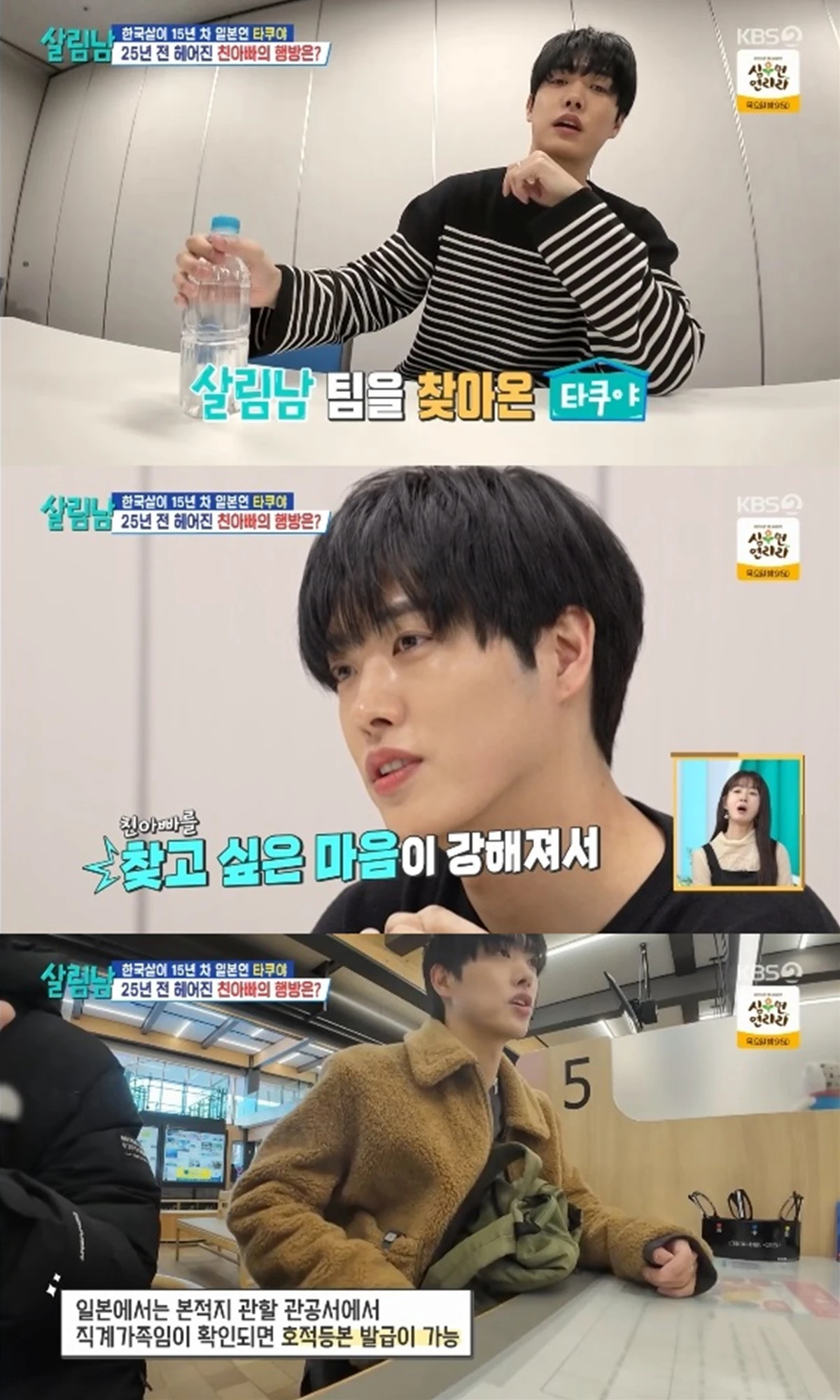 이날 타쿠야는 '살림남' 제작진을 찾아와 도움을 청했다. 어머니한테 친아버지의 얘기를 듣다보니까 친아버지를 찾고 싶은 마음이 강해졌다고.
