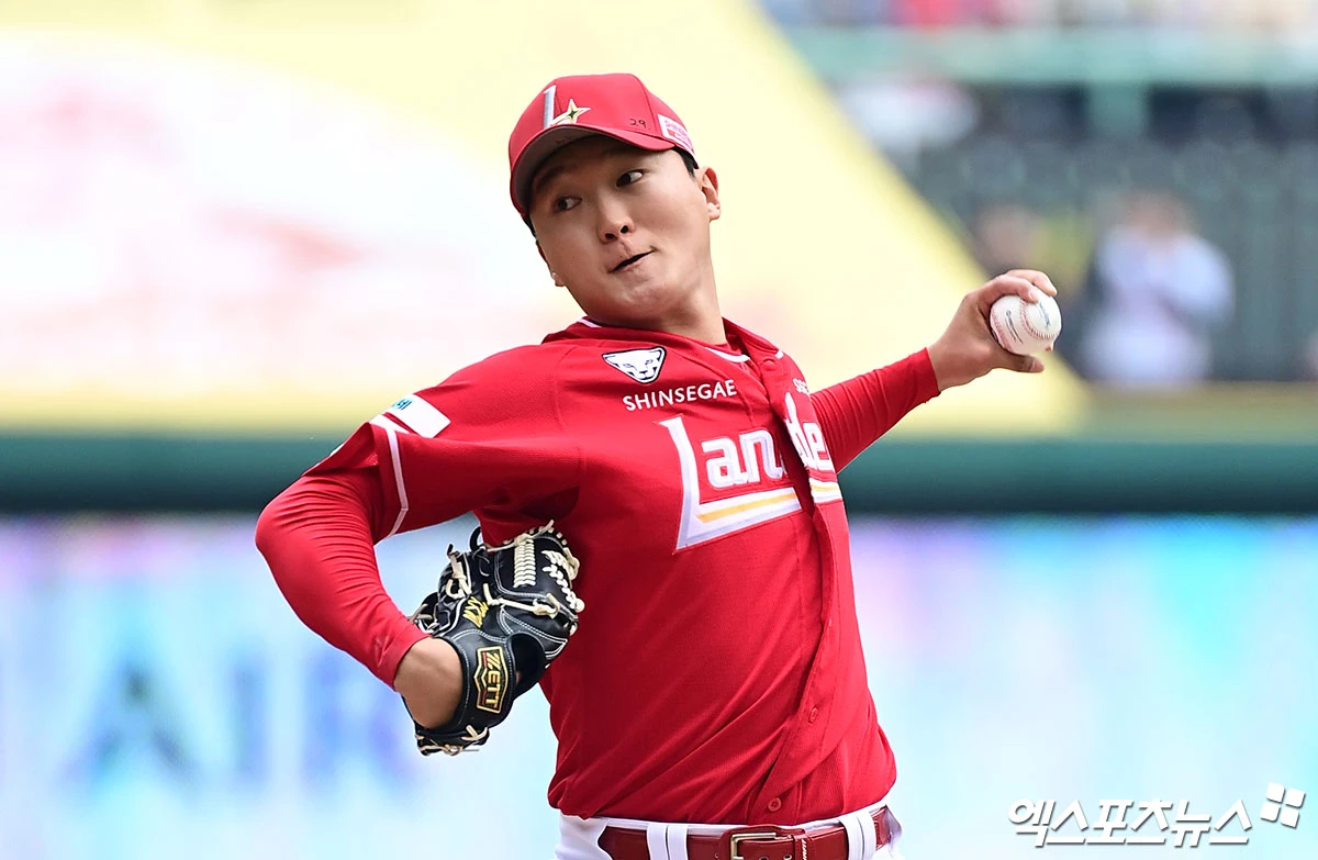 (엑스포츠뉴스 인천, 박지영 기자) 29일 오후 인천SSG랜더스필드에서 열린 '2026 신한 SOL Bank KBO리그' KIA 타이거즈와 SSG 랜더스의 경기, 1회초 SSG 선발투수 김건우가 역투하고 있다.