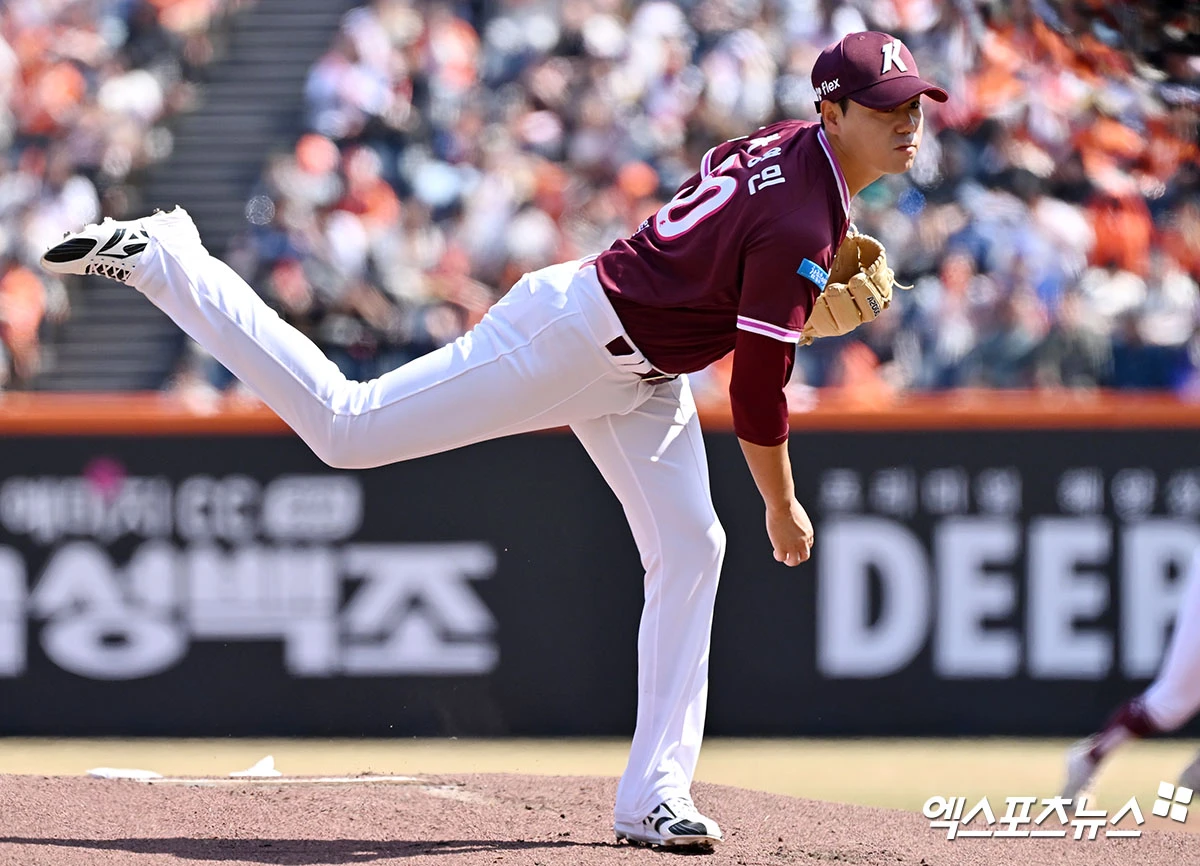 (엑스포츠뉴스 대전, 김한준 기자) 29일 오후 대전 한화생명 볼파크에서 열린 '2026 신한 SOL Bank KBO리그' 키움 히어로즈와 한화 이글스의 경기, 1회말 키움 선발투수 하영민이 투구 준비를 하고 있다.