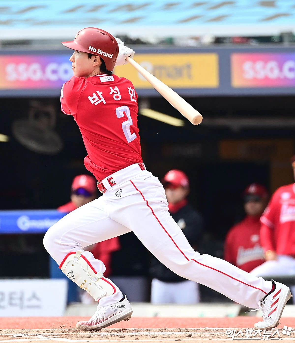 (엑스포츠뉴스 인천, 박지영 기자) 29일 오후 인천SSG랜더스필드에서 열린 '2026 신한 SOL Bank KBO리그' KIA 타이거즈와 SSG 랜더스의 경기, 2회말 1사 1,2루 SSG 박성한이 2타점 적시 2루타를 때려내고 있다.