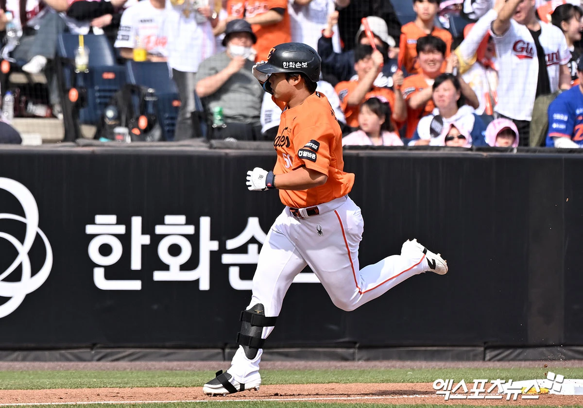 (엑스포츠뉴스 대전, 김한준 기자) 29일 오후 대전 한화생명 볼파크에서 열린 '2026 신한 SOL Bank KBO리그' 키움 히어로즈와 한화 이글스의 경기, 3회말 무사 1루 한화 강백호가 투런 홈런을 날리고 있다.