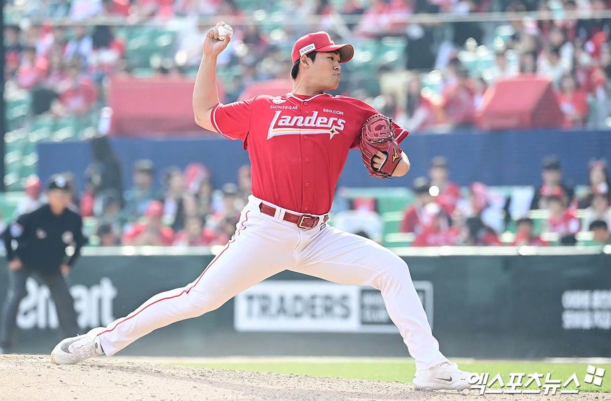 (엑스포츠뉴스 인천, 박지영 기자) 29일 오후 인천SSG랜더스필드에서 열린 '2026 신한 SOL Bank KBO리그' KIA 타이거즈와 SSG 랜더스의 경기, 6회초 SSG 전영준이 역투하고 있다.