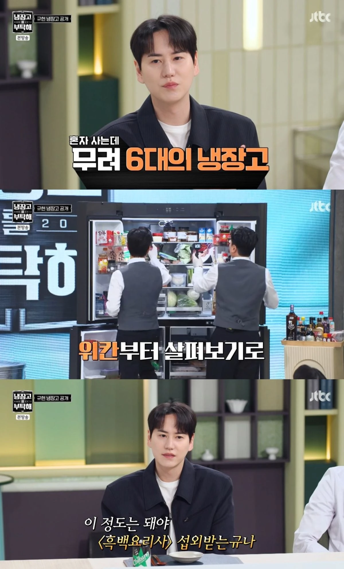 이에 대해 규현은 "숙소 생활을 18년을 했는데, 독립하면서 그걸 갖고 들어왔다. 이사하면서 메인 냉장고를 사고, 붙박이 냉장고와 와인 셀러, 선물 받은 와인 셀러와 PPL로 받은 냉장고까지 총 6대가 됐다"라고 설명했다.