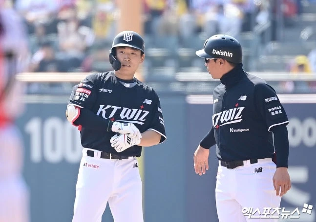(엑스포츠뉴스 잠실, 양정웅 기자) 데뷔 첫 개막전 선발 출전의 영광을 안은 류현인(KT 위즈)이 군복무 기간 기대를 모으게 한 타격 능력을 증명했다.