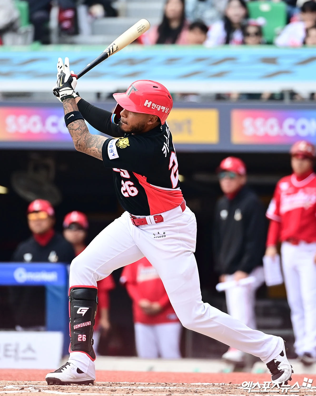 카스트로는 네 번째 타석에서 큼지막한 아치를 그렸다. 7회초 2사 1루에서 김택형의 4구 139km/h 직구를 통타, 오른쪽 담장을 넘기는 투런포를 쏘아 올렸다. 카스트로의 KBO리그 데뷔 첫 홈런이었다.