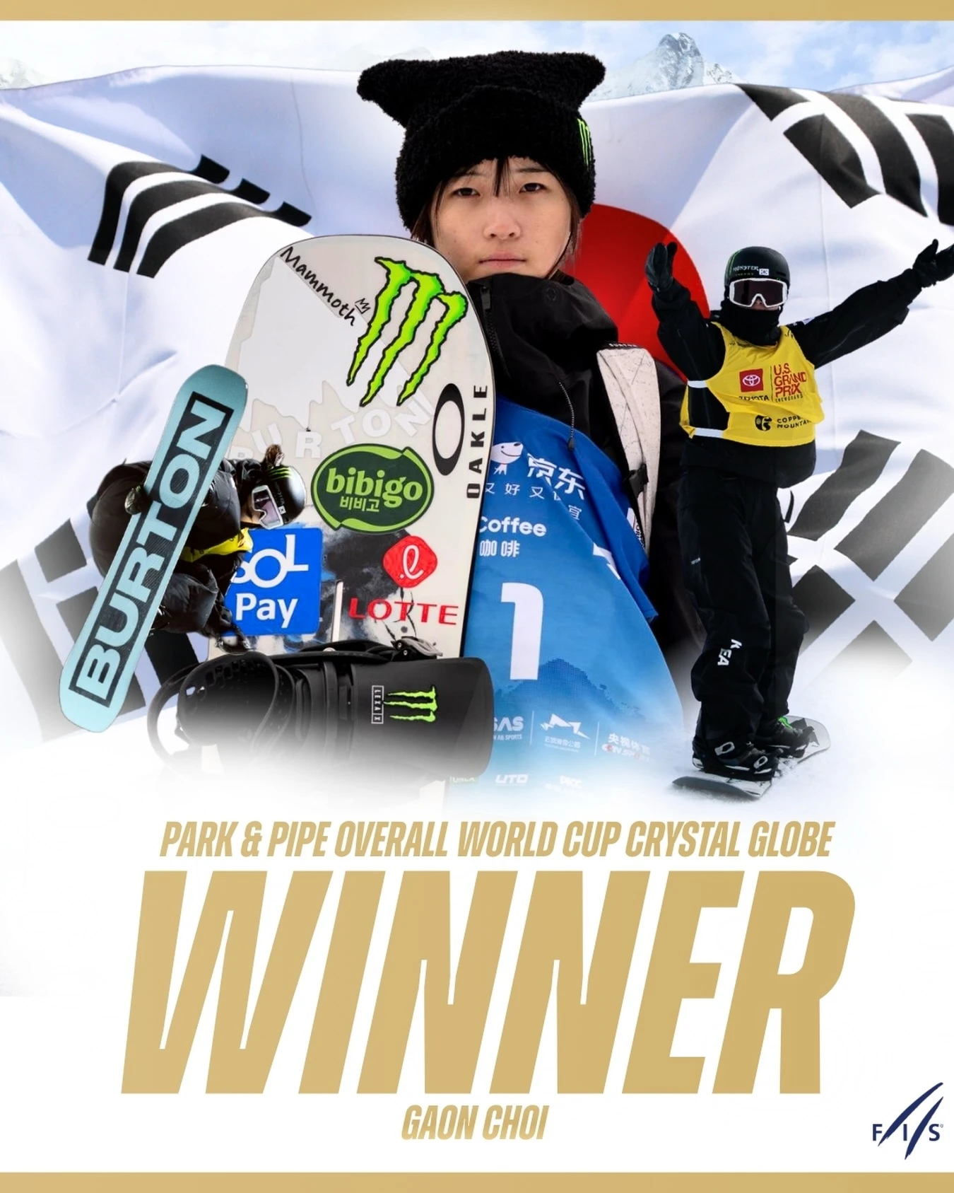 1차 시기에 당한 무릎 부상은 물론 시즌 전 손목 골절상을 확인한 최가온은 잔여 시즌 휴식을 결장했다. 그럼에도 해당 종목 일인자로 자리매김함과 동시에 올 시즌 스노보드 최강자로 우뚝 섰다.