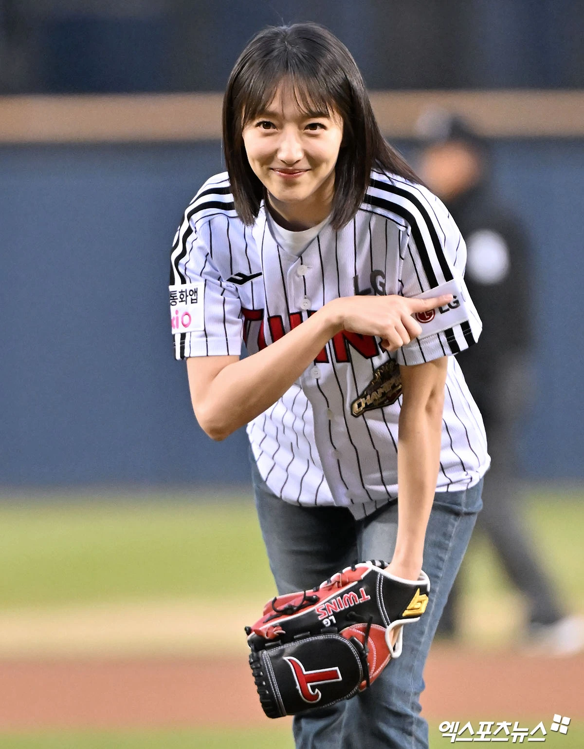 (엑스포츠뉴스 잠실, 김한준 기자) 31일 오후 서울 송파구 잠실야구장에서 열린 '2026 신한 SOL Bank KBO리그' KIA 타이거즈와 LG 트윈스의 경기, 경기 전 배우 표예진이 시구에 임하고 있다.