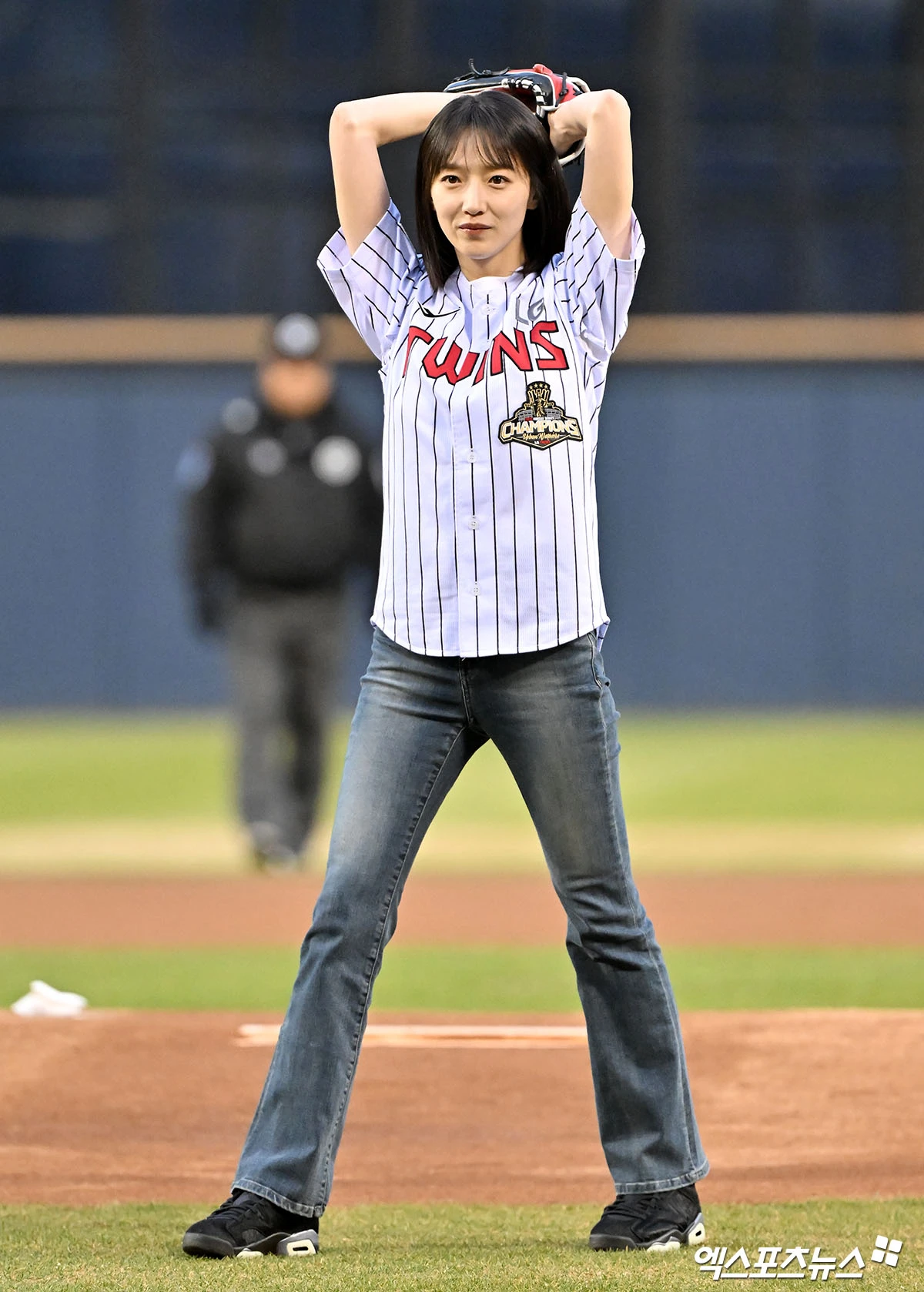 (엑스포츠뉴스 잠실, 김한준 기자) 31일 오후 서울 송파구 잠실야구장에서 열린 '2026 신한 SOL Bank KBO리그' KIA 타이거즈와 LG 트윈스의 경기, 경기 전 배우 표예진이 시구에 임하고 있다.