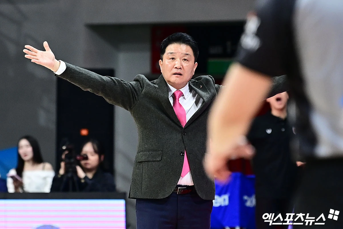 (엑스포츠뉴스 안양, 박지영 기자) 31일 오후 안양실내체육관에서 열린 '2026-2026 LG전자 프로농구' 안양 KGC와 창원 LG의 경기, KGC 유도훈 감독이 판정에 어필하고 있다.