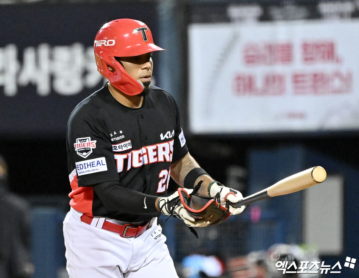 (엑스포츠뉴스 잠실, 김한준 기자) 31일 오후 서울 송파구 잠실야구장에서 열린 '2026 신한 SOL Bank KBO리그' KIA 타이거즈와 LG 트윈스의 경기, 4회초 KIA 카스트로가 볼넷으로 출루하고 있다.