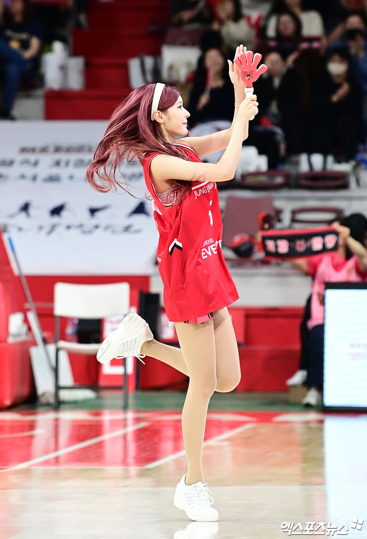 (엑스포츠뉴스 안양, 박지영 기자) 31일 오후 안양실내체육관에서 열린 '2026-2026 LG전자 프로농구' 안양 정관장과 창원 LG의 경기, 정관장 치어리더 신혜령이 응원을 펼치고 있다.
