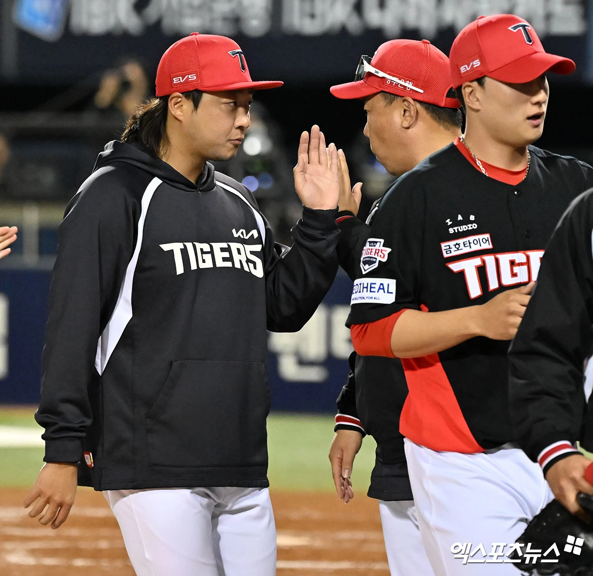 김범수 ‘이범호 감독과 하이파이브’[포토]