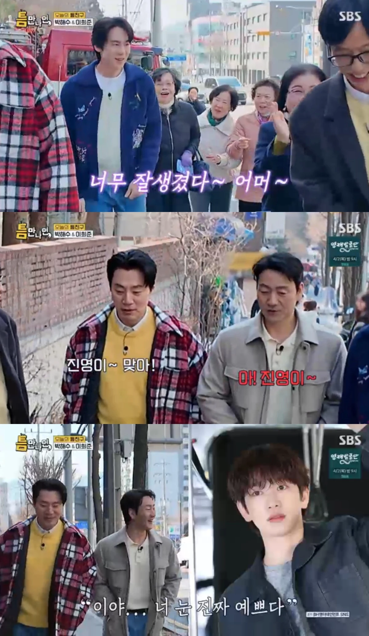 31일 방송된 SBS 예능 프로그램 '틈만 나면, 시즌4'에서는 '틈 친구'로 배우 박해수와 이희준이 출연해 유재석, 유연석과 함께 쌍문동을 찾아 '틈 주인'에게 행운을 선물했다.