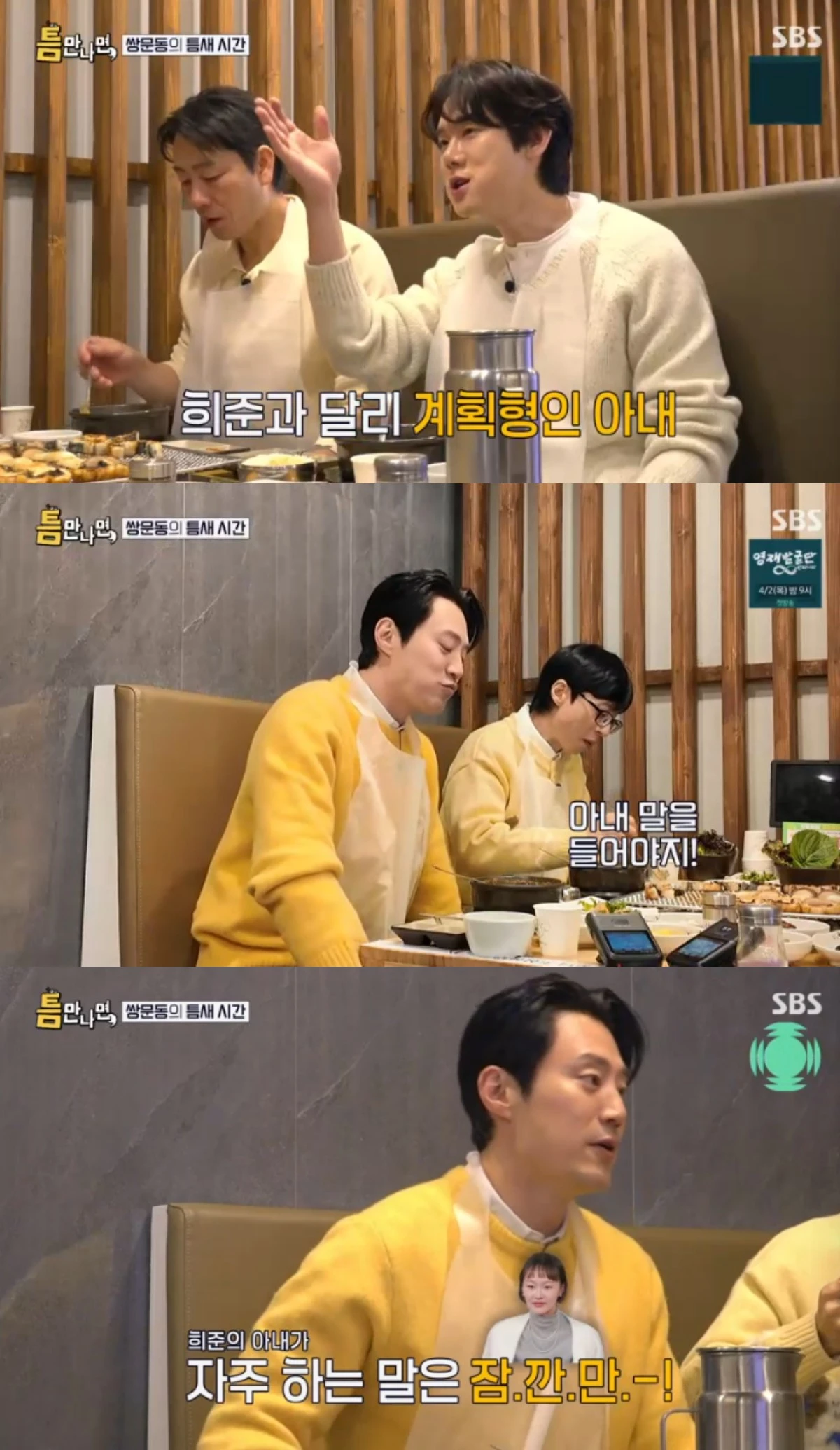 뿐만 아니라 이희준과 박해수는 아내에게 가장 많이 듣는 말을 언급하기도 했다. 이희준은 "저는 '잠.깐. 만-!'이라는 말을 가장 많이 듣는다"고 했고, 박해수는 "저는 아내한테 '아는데!'라는 말을 자주 듣는다"고 말해 웃음을 줬다.