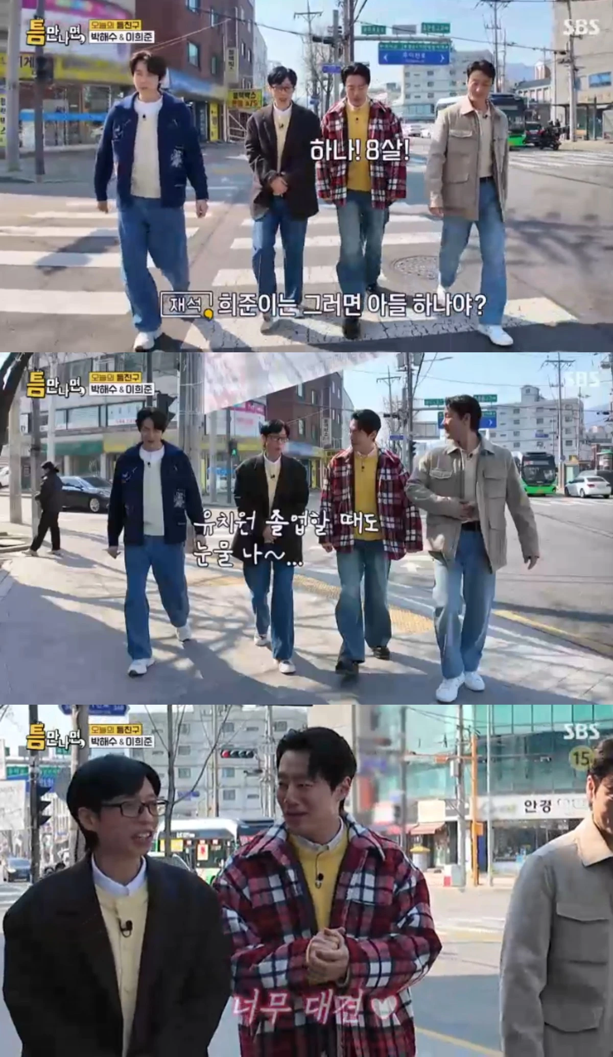 지난 31일 방송된 SBS 예능 프로그램 '틈만 나면, 시즌4'에서는 '틈 친구'로 배우 박해수와 이희준이 출연해 유재석, 유연석과 함께 쌍문동을 찾아 '틈 주인'에게 행운을 선물했다.