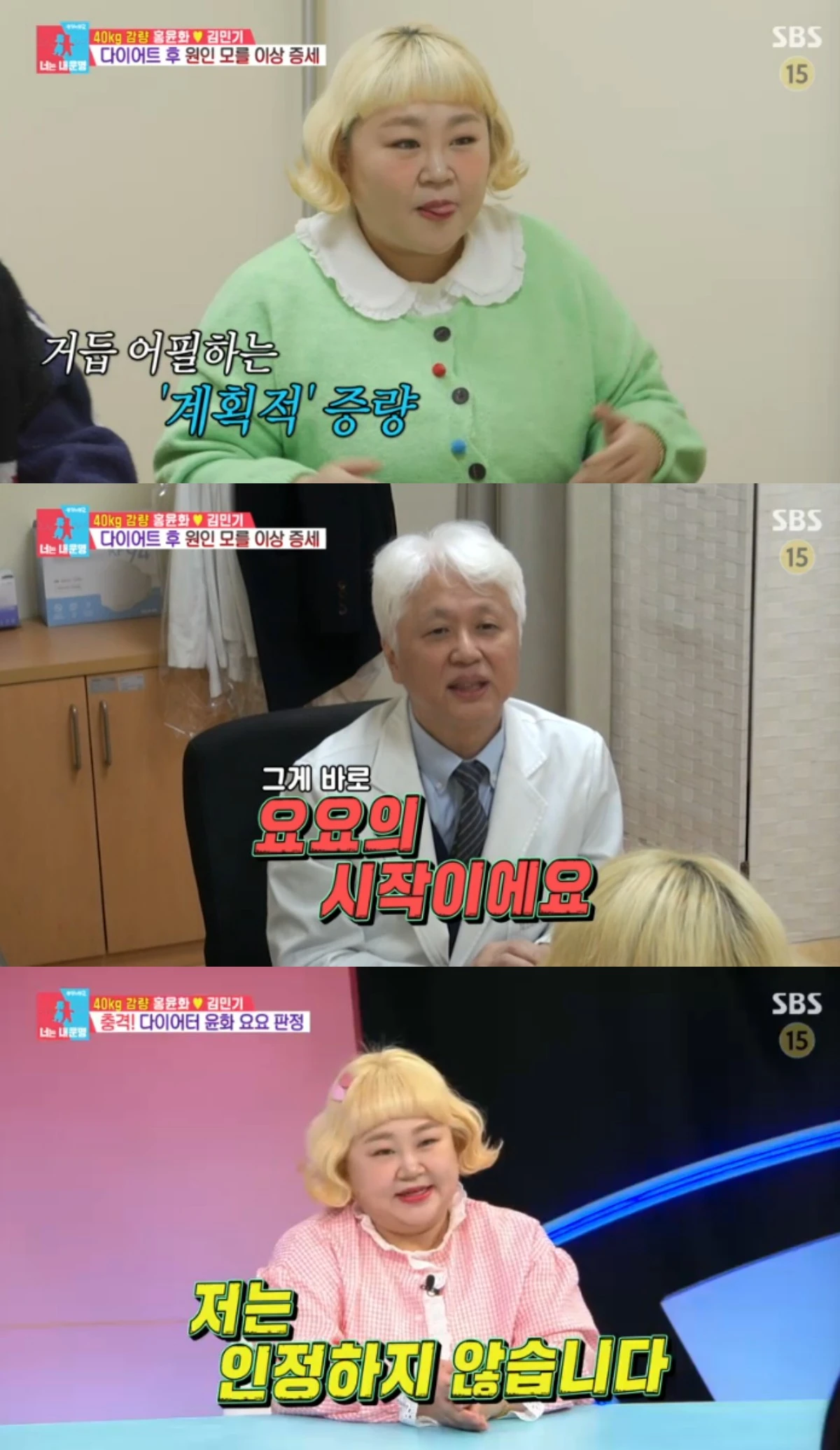 그러자 의사는 "그게 바로 요요의 시작"이라고 말했고, 홍윤화는 받아들이지 못했다.