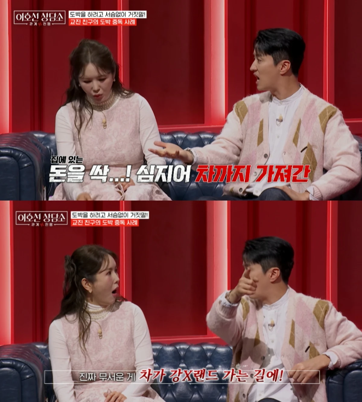 그는 "밥을 못 먹었다고 해서 20만 원을 줬더니 (친구가) 우리집에 왔다. 갈 곳 없다고 해 재워줬다"며 "그런데 그날 밤 집에 있는 돈을 싹 가져갔다. 문제는 내 차도 없어졌다"고 전해 모두를 충격에 빠뜨렸다.