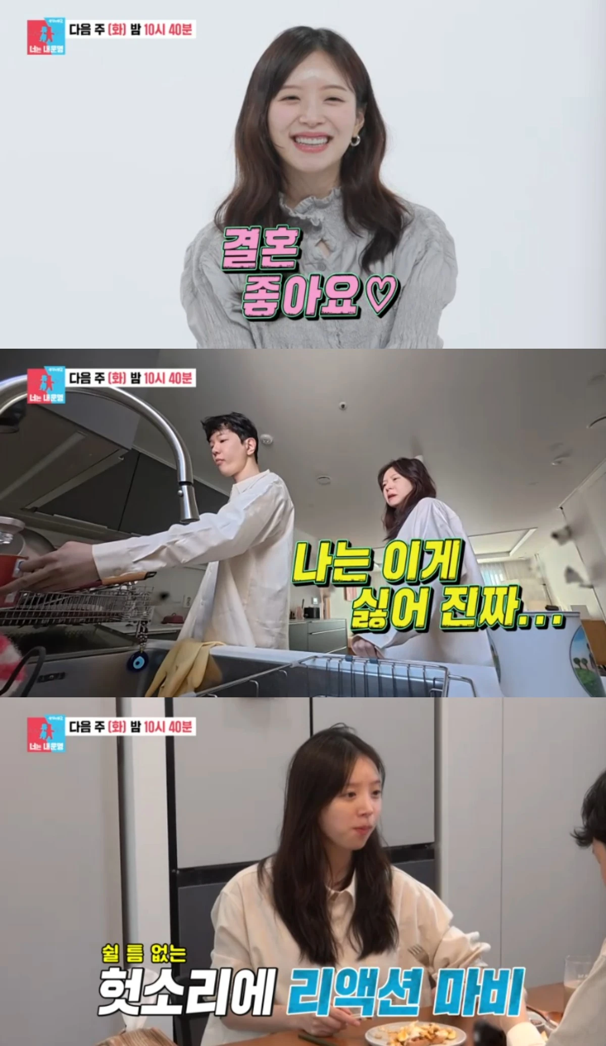 하지만 결혼을 예찬하던 김지영의 신혼 민낯도 드러났다. 김지영은 아침부터 "난 이게 진짜 싫어"라고 말하면서 윤수영과 티격태격했다.