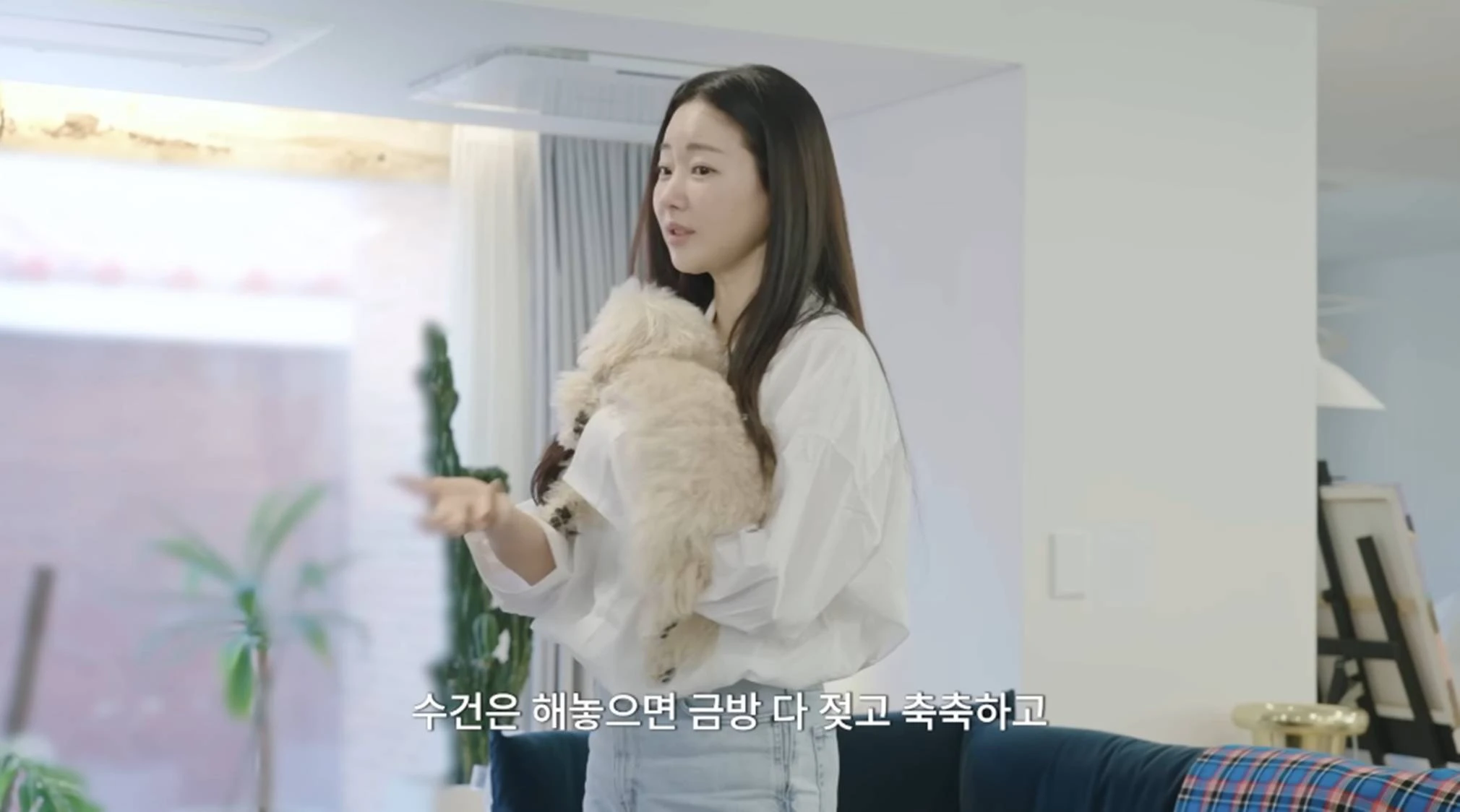 또한 "처음에는 밑에 뭘 받쳐놓고 생활했는데, 배변패드고 깔아놨다. 배변 패드가 물을 제일 잘 흡수하더라"고 덧붙이며 웃음을 자아냈다.