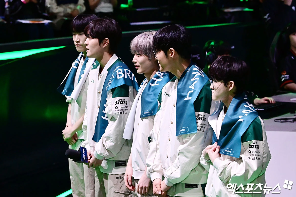 (엑스포츠뉴스 박지영 기자) 1일 오후 서울 청진동 롤파크에서 열린 '2026 LCK' 한화생명e스포츠와 한진 브리온의 경기, 브리온 '캐스팅' 신민제, '기드온' 김민성, '로키' 이상민, '테디' 박진성, '남궁' 남궁성훈이 인사하고 있다.