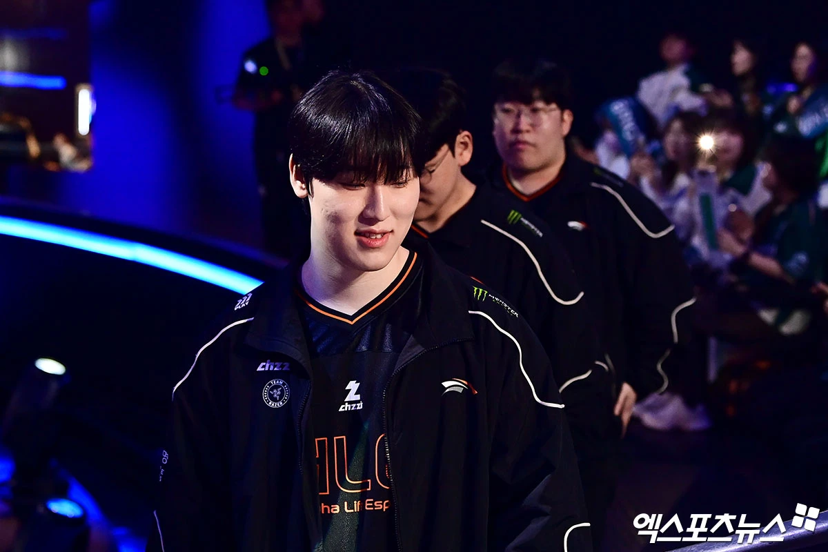(엑스포츠뉴스 박지영 기자) 1일 오후 서울 청진동 롤파크에서 열린 '2026 LCK' 한화생명e스포츠와 한진 브리온의 경기, 한화생명 '제카' 김건우가 입장하고 있다.
