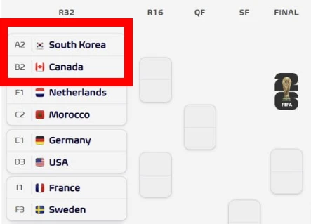 그러면서 A조 2위 한국이 B조 2위 캐나다와 32강에서 붙을 것으로 점쳤다. 실제 성사된다면 6월29일 미국 LA에서 벌어진다.