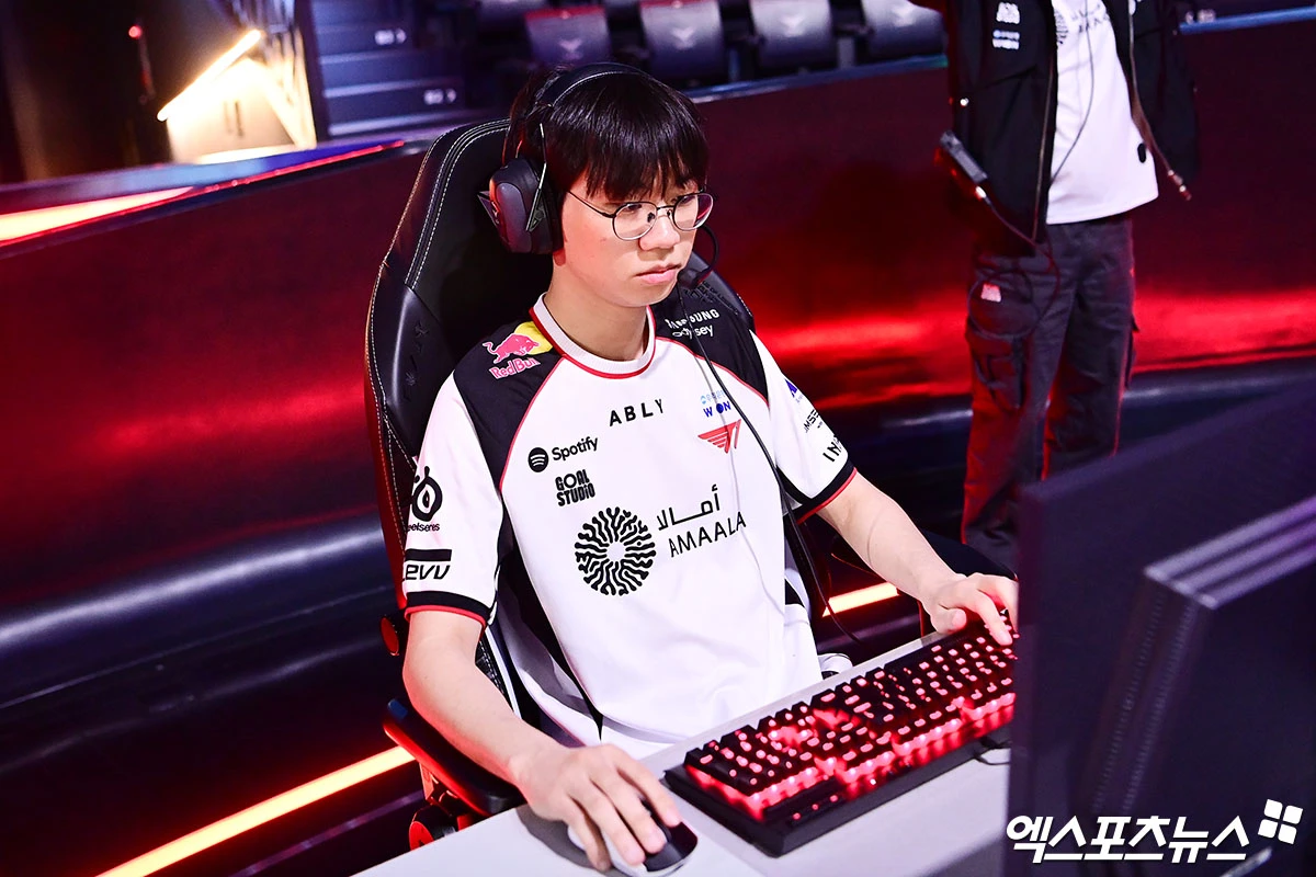 (엑스포츠뉴스 박지영 기자) 1일 오후 서울 청진동 롤파크에서 열린 '2026 LCK' T1과 KT 롤스터의 경기, T1 '도란' 최현준이 게임을 준비하고 있다.