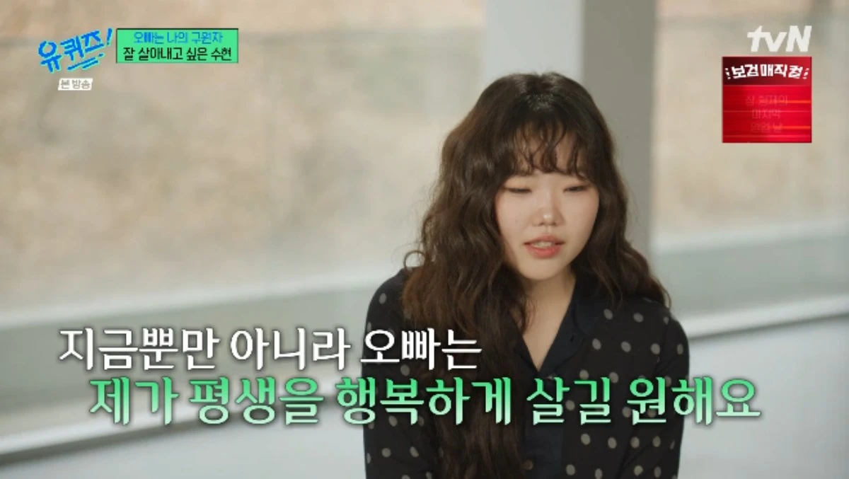 이수현은 "오빠는 구원자였다. 오빠는 제가 평생을 행복하게 살길 원한다. 그래서 잘 살아내고 싶다. 앞으로의 삶을"이라고 말하면서 이찬혁을 향한 고마움을 드러냈다.