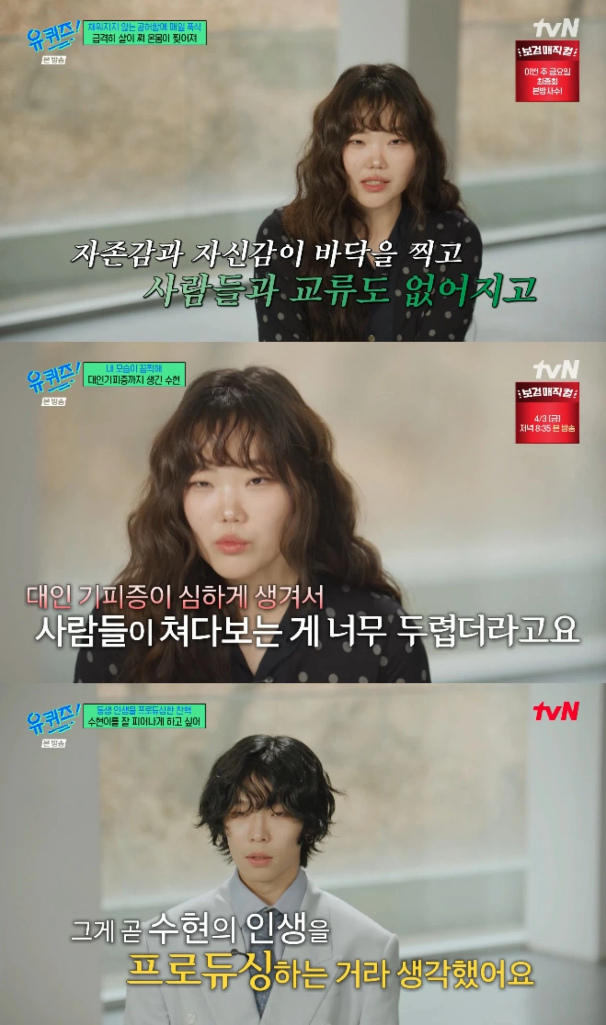 그러면서 "그때부터 히키코모리 생활을 시작했다. 빛을 차단하고, 2년 정도 그렇게 살았다. 미래를 포기한거다. 더 나은 미래가 없다는 생각이었다"고 했다.
