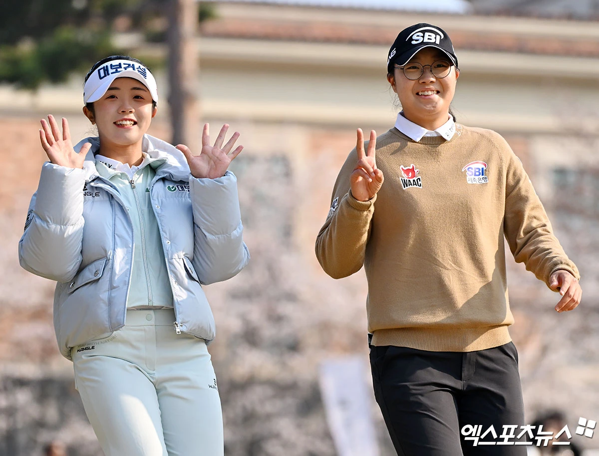 (엑스포츠뉴스 여주, 김한준 기자) 2일 경기도 여주 더 시에나 벨루토 컨트리클럽(파72·6586야드)에서 열린 KLPGA '더 시에나 오픈 2026' 1라운드 경기, 양효진 김가희2가 10번홀 세컨샷을 위해 이동하고 있다.