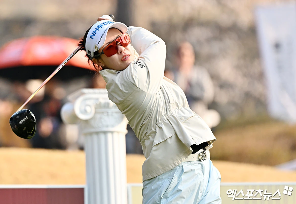 (엑스포츠뉴스 여주, 김한준 기자) 2일 경기도 여주 더 시에나 벨루토 컨트리클럽(파72·6586야드)에서 열린 KLPGA '더 시에나 오픈 2026' 1라운드 경기, 박민지가 10번홀 티샷을 날리고 있다.
