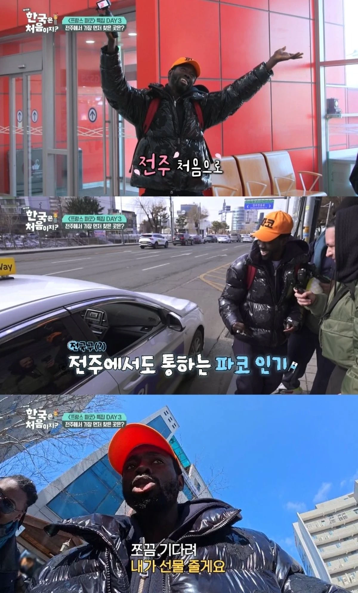 우여곡절 끝에 전주에 도착한 이들은 첫 일정을 소화하기 위해 택시에 몸을 싣는다. 이때 전주 택시 기사님이 파코를 단번에 알아보고 반가움을 표현하며 파코의 전국구 인기를 입증한다.